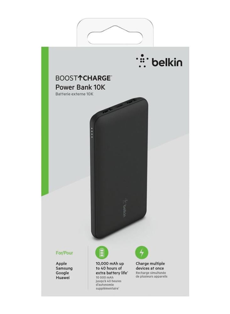 بنك الطاقة المحمول Belkin BoostCharge 10K، سعة 10000 مللي أمبير في الساعة، يشحن ما يصل إلى 3 أجهزة في وقت واحد مع ما يصل إلى 15 وات، 1 * منافذ USB-C و2 * USB-A، لأجهزة iPhone وSamsung وAirPods وiPad